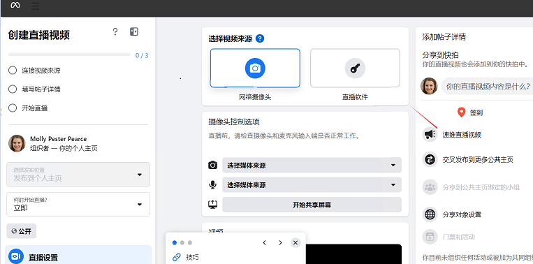 The account configuration is: fb account + 1 Page Ad LiveStream